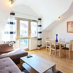El apartamento dispone de una cocina completa, que se completa con hervidor eléctrico, tostadora y también horno. El restaurante Restauracja Molo, que ofrece comida saludable, está a un par de minutos en coche de la propiedad. La estación de autobuses Chrobrego/Uzdrowiskowa está a aproximadamente 5 minutos a pie.